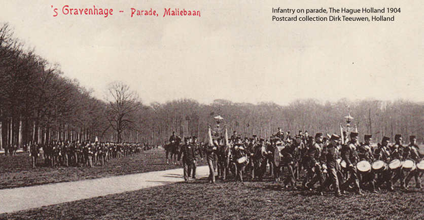 Historical facts and experiences are always important in my illustrated articles. On this page you can find - among other things - some military pictures from the Dutch olden days. Skating Dutch infantry is very Dutch: scroll down. In memory of my, much too modest, grandfather Dirk van Dam I selected some soldierly photos of him from about 1910 as well.