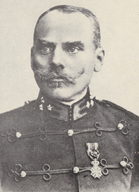 First detachment second division Marechaussee Special Forces (M.S.F.), Commander Paris and his men at Kuala Bhèë, Aceh 1920. In the centre the bivouac commander Lieutenant Paris; with European sergeants and Indonesian cadre (non-commissioned officers). From H.J. Schmidt and M.H. du Croo: Marechaussee in Atjeh; Maastricht Holland 1943, p. 176